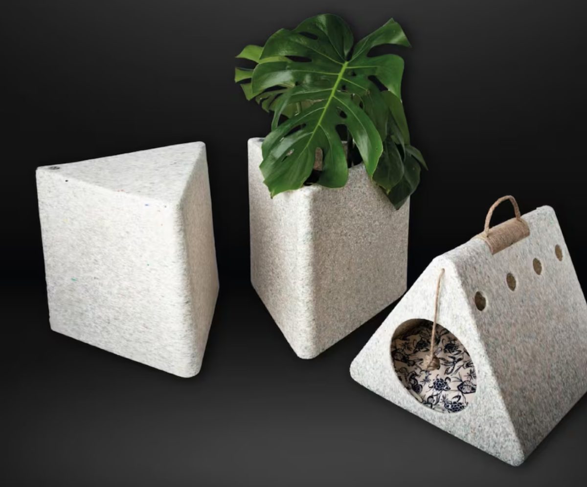 “Di Marote, kami bekerja dengan plastik daur ulang dari kantong konstruksi, bahan yang sangat kuat yang kami kumpulkan dan daur ulang. Ke dasar plastik daur ulang, kami menambahkan ampas kopi atau bubuk yerba mate. Ampas ini berfungsi sebagai pengisi dan pewarna alami, memberikan setiap produk tekstur, warna, dan penampilan yang unik. Kami tidak menggunakan pigmen buatan, melainkan warna alami kopi dan yerba. Hasilnya adalah bahan baru yang 100% didaur ulang dan memiliki warna organik serta sejarah,” jelasnya.