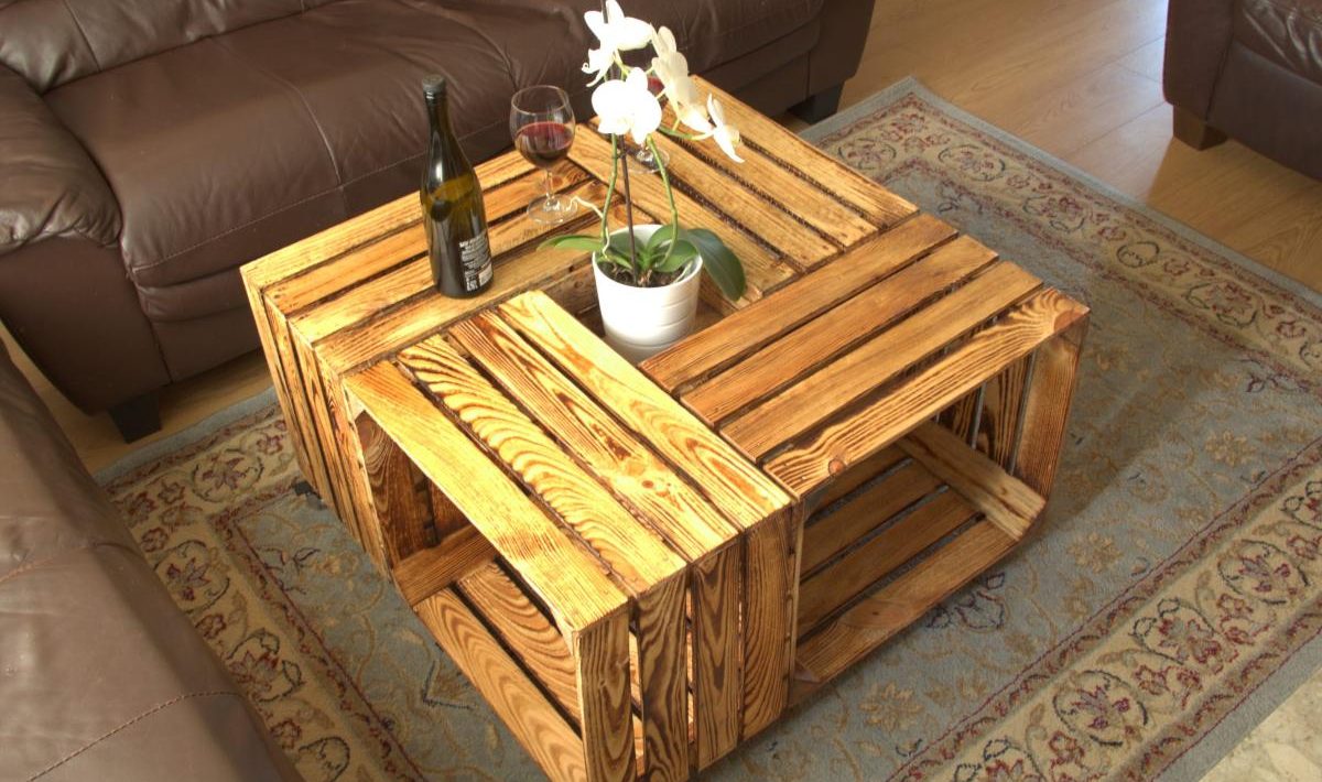 Saat Anda pergi ke toko sayuran, mintalah empat kotak kayu dan ubah menjadi meja untuk ruang tamu Anda dengan mengikuti beberapa langkah sederhana