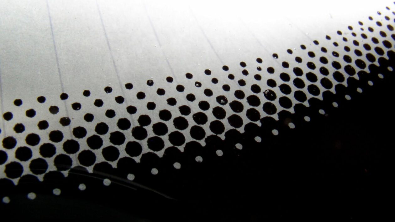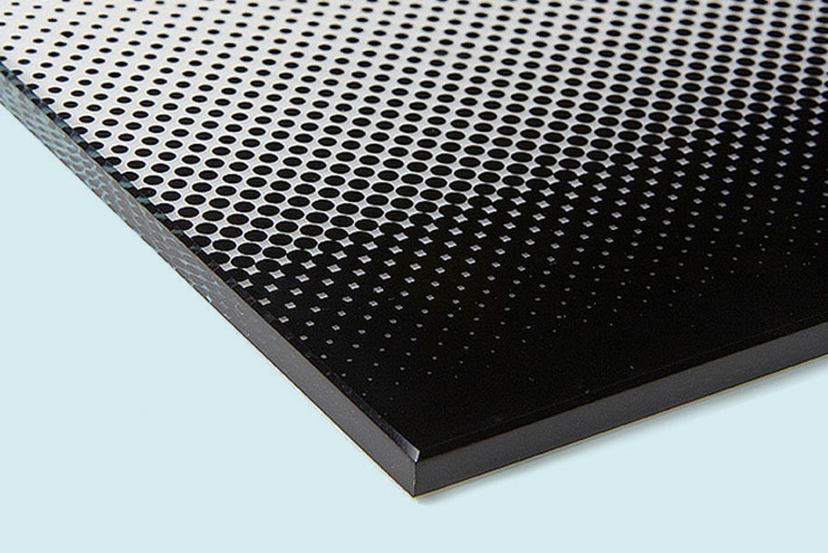 Meskipun terlihat seperti cat, titik-titik ini bukanlah cat: titik-titik ini adalah keramik yang dipanggang pada suhu sangat tinggi, yang menyatu dengan kaca selama proses pembuatannya. Prosesnya sangat menarik, karena pasta keramik hitam yang masih panas terlebih dahulu diaplikasikan pada tepi kaca, kemudian dipanggang bersama kaca dalam proses tempering dan pembengkokan.
