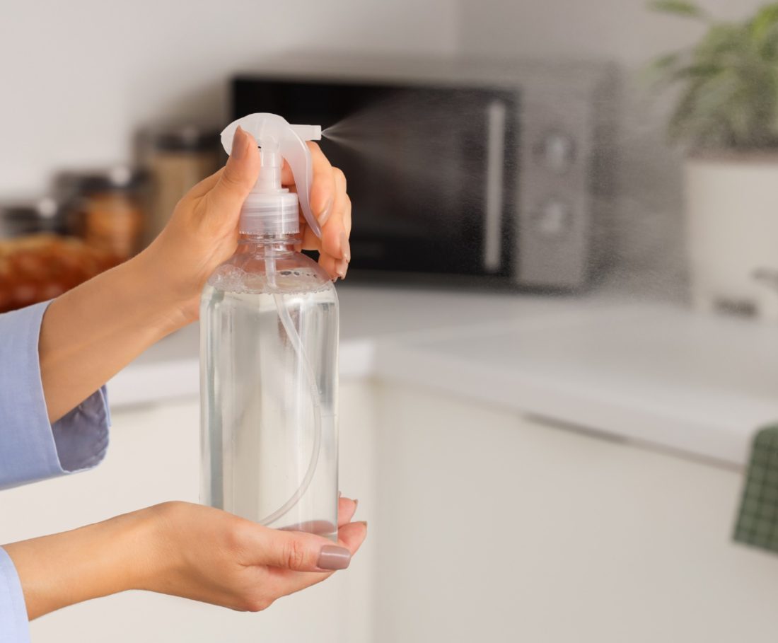 - Semprotkan campuran ini ke meja, meja dapur, furnitur dapur, keramik, atau kaca.