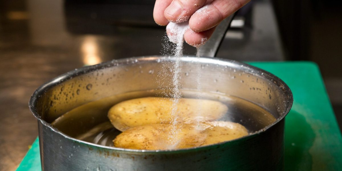 - Sebelum menambahkan garam, diamkan kentang selama beberapa detik di atas handuk kertas.