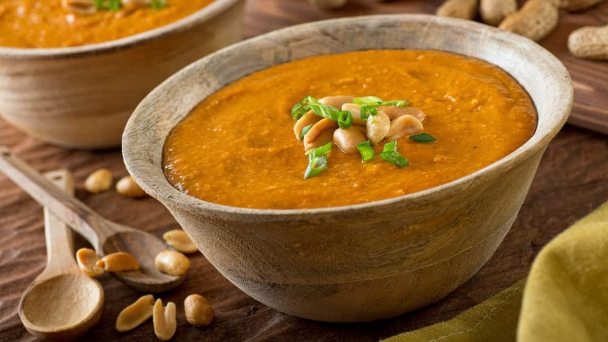 Sup yang menenangkan ini, adaptasi cepat dari semur yang dimasak dengan api kecil yang umum di sebagian besar Afrika Barat, menggabungkan labu kalengan dengan cabai pedas, jahe, dan krim kacang yang lembut.