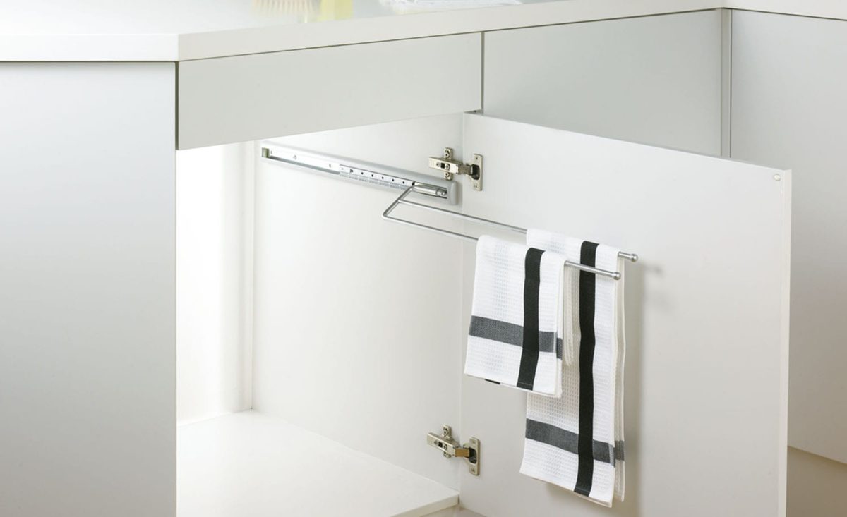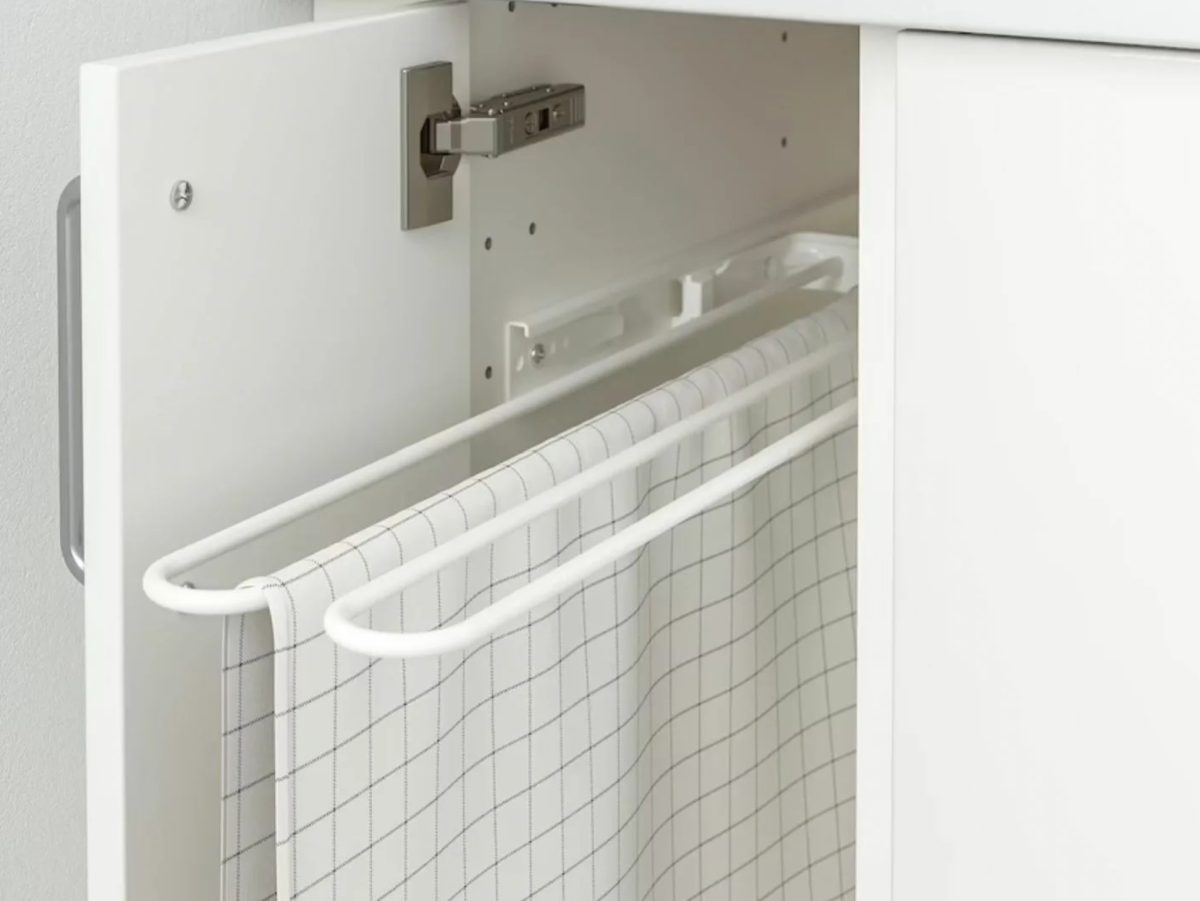 - Pasang gantungan di sisi dalam, pada ketinggian yang nyaman untuk menggantung dan mengambil lap.