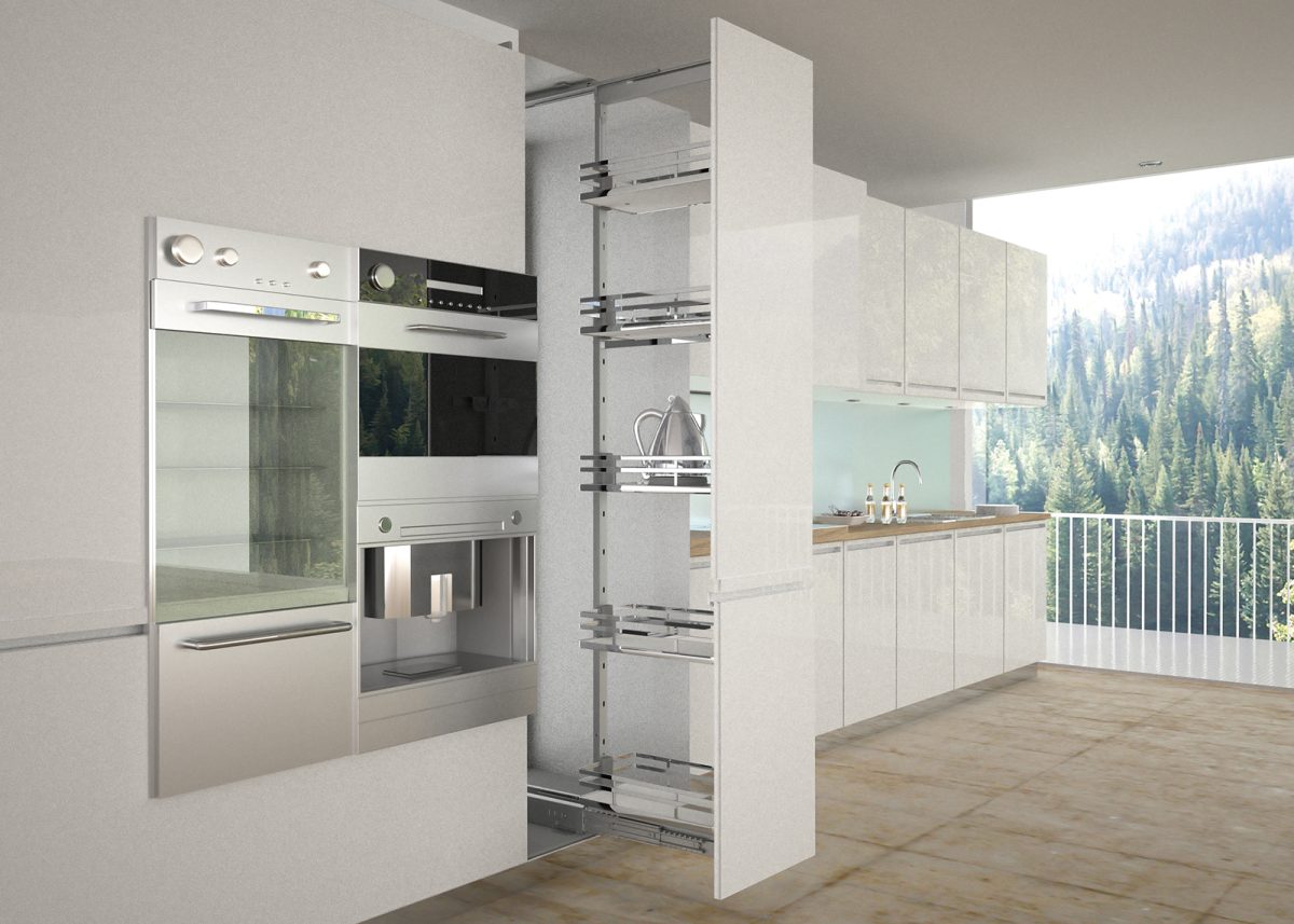 - Estetika minimalis dan modern: Dapur tahun 2025 membutuhkan bagian depan yang halus, tanpa pegangan, dan garis yang terus menerus. Menara vertikal tersembunyi dengan sempurna dan menjaga dapur tetap “bersih” secara visual.